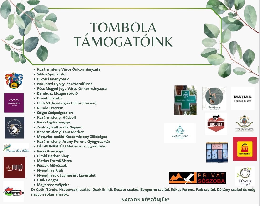 TOMBOLA hozzájárulások a 25. születésnapi rendezvényre