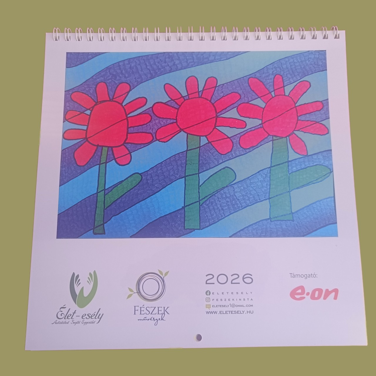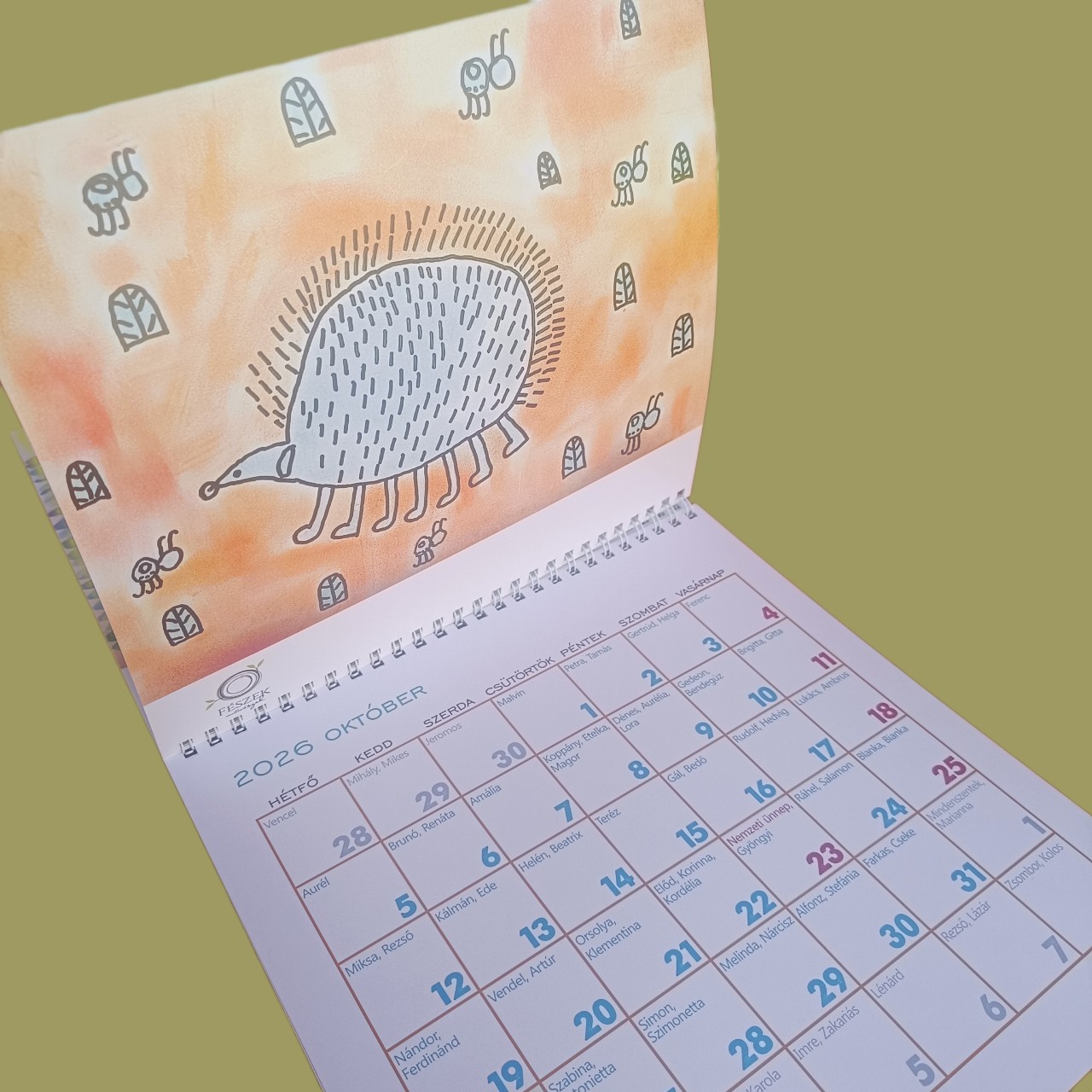 Jó minőségű, felakasztható falinaptár, minden oldalán a "Fészek művészek" képeivel.